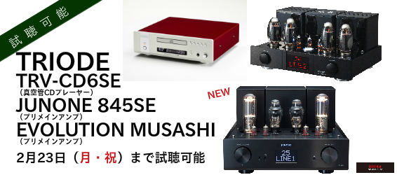 ②TRIODE 3機種試聴可能。 TRV-CD6SE EVOLUTION MUSASHI JUNONE 845SE |